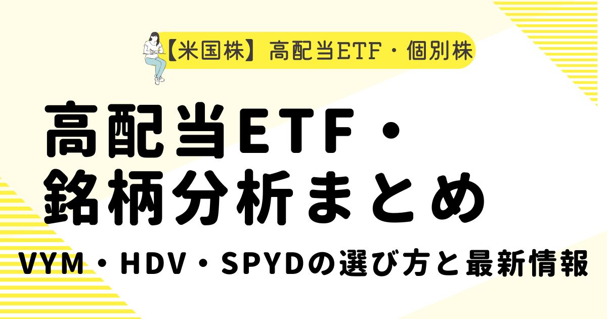 私は主に高配当ETF(VYM/HDV/SPYD)を中心にポートフォリオを組んでいます。