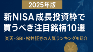 【2025年版】新NISAの成長投資枠で人気のおすすめ銘柄10選を紹介。楽天証券・SBI証券・松井証券で買われている人気株ランキングも掲載。トヨタや三菱商事など、長期で成長が期待できる日本株をわかりやすく解説します。