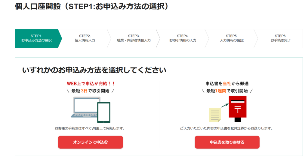 例として、松井証券の口座開設の手順について、流れを解説します。