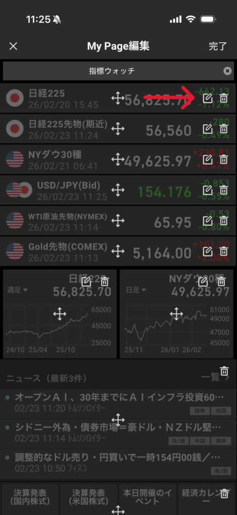 - 「日経平均」「NYダウ」「ドル円」など、主要指標を1画面に並べて点ではなく線で捉える。